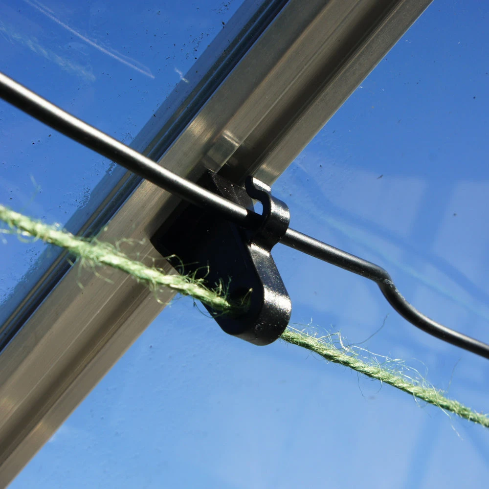 Pack 6 Grow Hooks – easily secured to the roof of the greenhouse they can be used to hold electric cables out of the way or attach string to them to support plants as they grow, e.g. tomatoes.