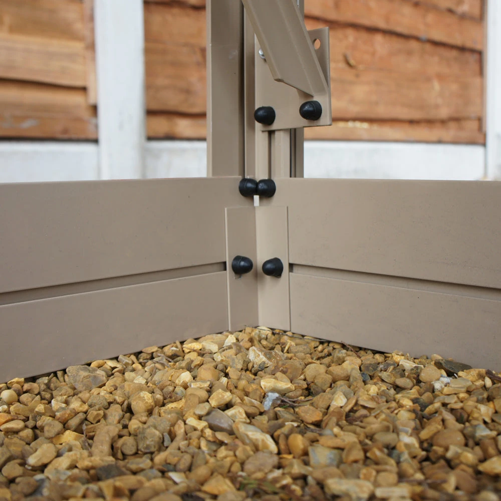 Extra Wide Gutters complete with Rainwater Collection Kit – running the length of both sides of the greenhouse this integral guttering also adds to the strength of the structure. The Collection kit includes pipe work and outlets for one end of each gutter and stoppers to terminate the opposite ends.Â