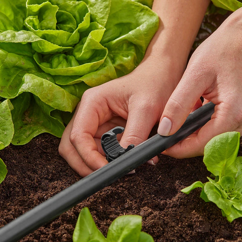 Can be used to hold the Supply Tube in place on the ground – the 5 inch (13cm) ‘leg’ on the base of the unit can be sunk into the ground to securely hold the tube whilst the top of the unit clips onto the tube. Â