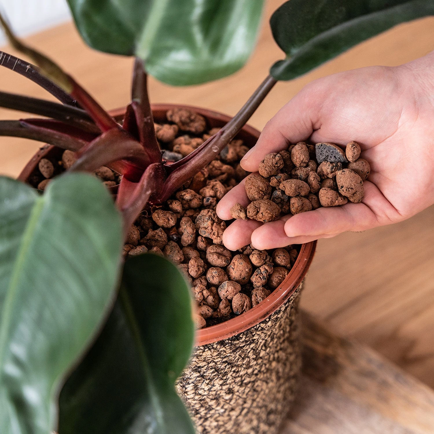 As a decorative topping – sprinkle a layer of Hydroleca onto the compost surface of pots, containers, window boxes and tube. It can be used both indoors and outdoors.