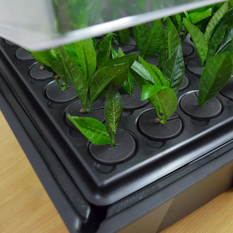 With Lights – lights on this propagator will prevent leggy growth. You will receive two grow lights which sit in specially designed grooves in the lid keeping them at the correct distance from the plants. The light spectrum they provide creates healthy growth, preventing legginess.Â