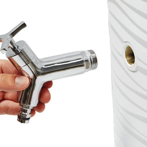 Supplied complete with a chrome tap which fits into a pre-fitted inlet seal and threaded connection so there is no need for drilling.