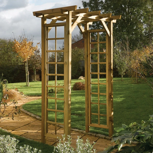 Manufactured from – timber which has been pressure treated to protect against rot, whilst still having a natural timber finish. You can paint or stain the arch if required.