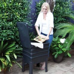 Hinged, Fly Proof, Locking Lid – being hinged means it’s easy to leave the lid open as you add in your organic waste. Simply lift the lid to one side, peel back the worm blanket and you can then add your kitchen scraps etc.