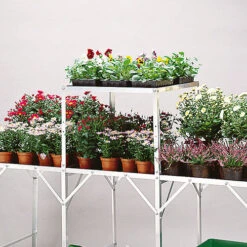 Two Wests own manufacture and design – As we design and manufacture this range of greenhouse versatile shelving here in Chesterfield, Derbyshire, we can vary the sizing infinitely. If our standard range of sizes do not suit your exact requirements then please give us a call, we will be pleased to tailor to your exact dimensions – usually at No Extra Cost.Â